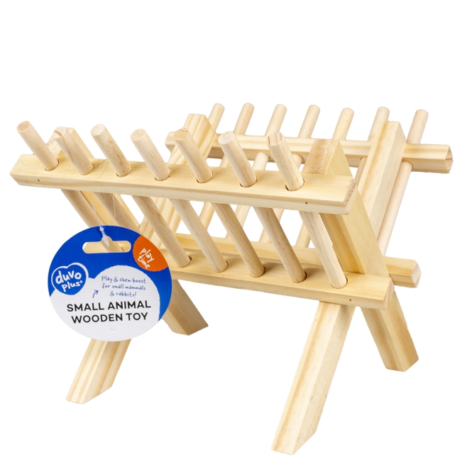 Diese hübsche Heuraufe von duvoplus ist das ideale Zubehör für Ihren Nagetierkäfig. Sie vermeidet Langeweile, fördert den natürlichen Nagetrieb und hält die Zähne gesund. Nagetierzähne wachsen ständig. Durch das viele Nagen bleibt das Wachsen der Zähne unter Kontrolle. Mit qualitativ hochwertigem Holz handelt es sich hierbei um ein gesundes und unerlässliches Spielzeug zum Klettern.