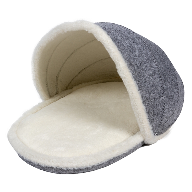 Das duvoplus-Katzenhaus bietet einen komfortablen und kuscheligen Ruheplatz für Ihre Katze. Außerdem ist er ein schöner Blickfang in jedem Interieur und bietet eine sichere Ablagefläche. Das Katzenhaus ist aus Polyesterfilz gefertigt und innen mit weichem Plüsch gepolstert. Dieses Haus ist faltbar und lässt sich mit Hilfe der Druckknöpfe leicht zusammenbauen.