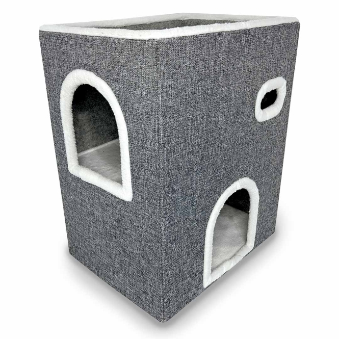 Das Katzenkratzhaus Gordon von duvoplus ist ein gemütlicher und sicherer Rückzugsort mit 2 Ebenen für deine Katze. Das Häuschen ist faltbar und somit einfach auf- und abzubauen. Gordon verfügt über eine Sisal-Kratzmatte an der Seite, mehrere Ein- und Ausgänge sowie Guck- und Spiellöcher. Das Häuschen ist mit weichem Plüsch für zusätzlichen Komfort ausgestattet.