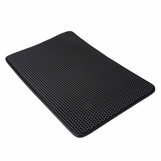 Diese praktische Matte von duvoplus kann vor jede Katzentoilette gelegt werden und erspart Ihnen viel Putzarbeit. Die Matte besteht aus 2 Schichten: Die obere Schicht ist mit Öffnungen versehen, die die Pfoten saubermachen und durch die die Katzenstreu hindurchfällt. Die untere Schicht fängt die Katzenstreu auf. So bleibt die Umgebung rund um die Katzentoilette länger sauber. Drücken Sie auf die Seiten, um die Matte im Handumdrehen zu reinigen. Die 2 Schichten sind mit Klettverschluss aneinander befestigt und können leicht mit Wasser und Seife gereinigt werden.