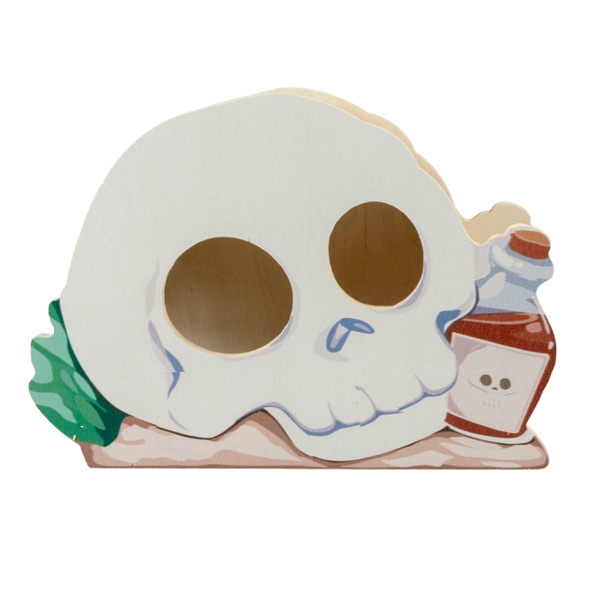 Dieses duvoplus Holzspielhaus ist das ultimative Geschenk für Ihren Kleinsäuger. Es bietet Ihrem Haustier einen sicheren Platz zum Ausruhen, Spielen und Nagen. Langeweile kommt hier bestimmt nicht auf! Holzspielzeug fördert außerdem den natürlichen Kauinstinkt und hält die Zähne gesund. Kleinsäuger müssen nagen, um das Wachstum ihrer Zähne unter Kontrolle zu halten. Das coole Design in Form eines Totenkopfes sorgt für einen spielerischen Touch. Dank der verwendeten tierfreundlichen Farbe ist dieses Spielzeug 100 % sicher.