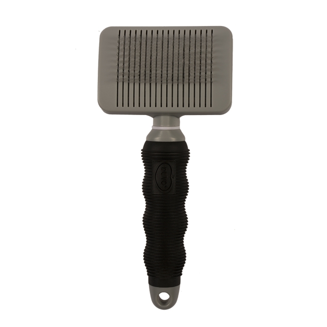 Mit dieser duvoplus-Zupfbürste entfernen Sie überflüssiges Haar und Knoten aus dem Fell. Die sehr feinen gebogenen Zinken helfen Ihnen auch, die dicke Unterwolle vorsichtig ohne Hautreizungen auszudünnen. Äußerst gut geeignet für Katzen und Hunde mit dickem, langem oder krausem Fell. Durch das Selbstreinigungssystem drücken Sie mit einer Daumenbewegung alle Haare einfach durch die Zinken heraus. Wenn Sie Ihren Vierbeiner regelmäßig bürsten, halten Sie das Fell glänzend und gesund und haben darüber hinaus weniger Reinigungsarbeiten zu Hause und im Auto. Der ergonomische Griff liegt angenehm in der Hand und besteht aus langlebigem TPR-Gummi.
