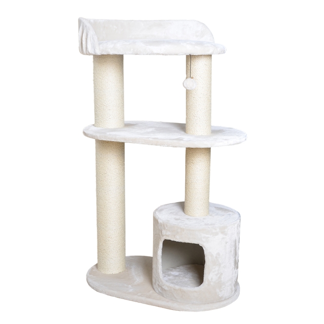 Der Kratzbaum Bedford von EBI bietet alles, was sich eine Katze wünscht: einen Kratzbaum aus weichem Plüsch mit einer Hütte im unteren Bereich und 2 Etagen. Die 4 Kratzpfähle sind aus festem Sisal, damit die Katze nach Herzenslust kratzen kann.