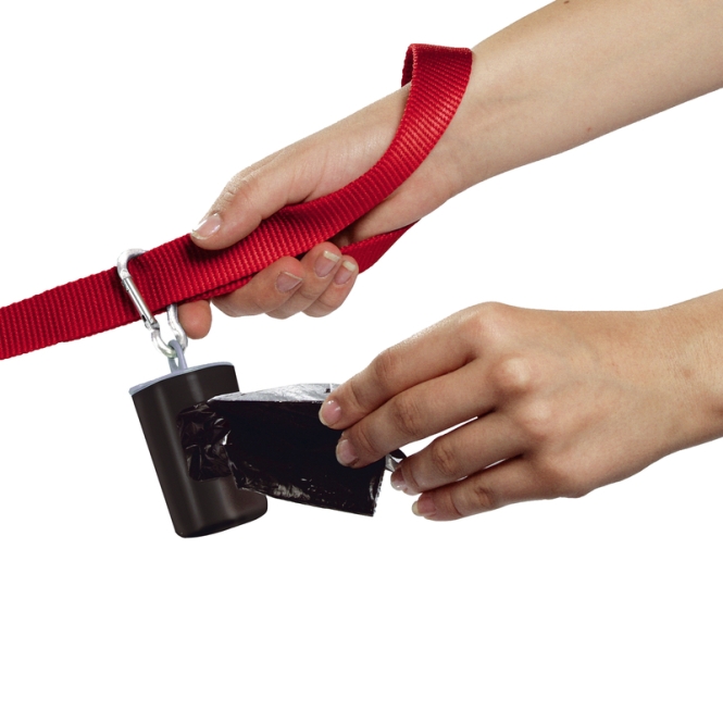 Hundekottüte Swifty in praktischer Dispenser Box. Die Box kann an Leine, Halsband, Gürtel oder Tasche befestigt werden. Damit sind Sie immer bestens gerüstet. Hat Ihr Hund sein “großes Geschäft” gemacht, brauchen Sie Swifty einfach nur aus der Box entnehmen und wie einen Handschuh über Ihre Hand streifen. Jetzt können Sie den Hundekot sicher und sauber aufnehmen und entsorgen. Mit dem integrierten Hygienestreifen können Sie den After Ihres Tieres schnell und sauber ausputzen. Inklusive 2 Rollen mit je 8 Tüten. Ersatztüten sind erhältlich zu 3 Rollen mit je 8 Tüten.